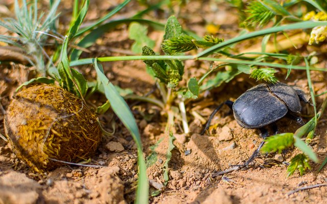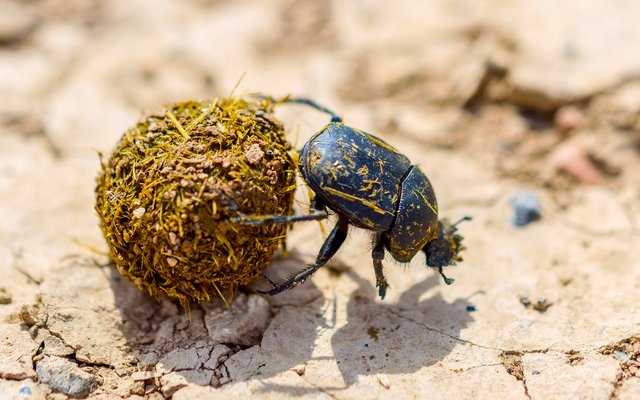 Woraus besteht die Kugel vom Mistkäfer? Hör zu. Lies mit. Finde es heraus.
